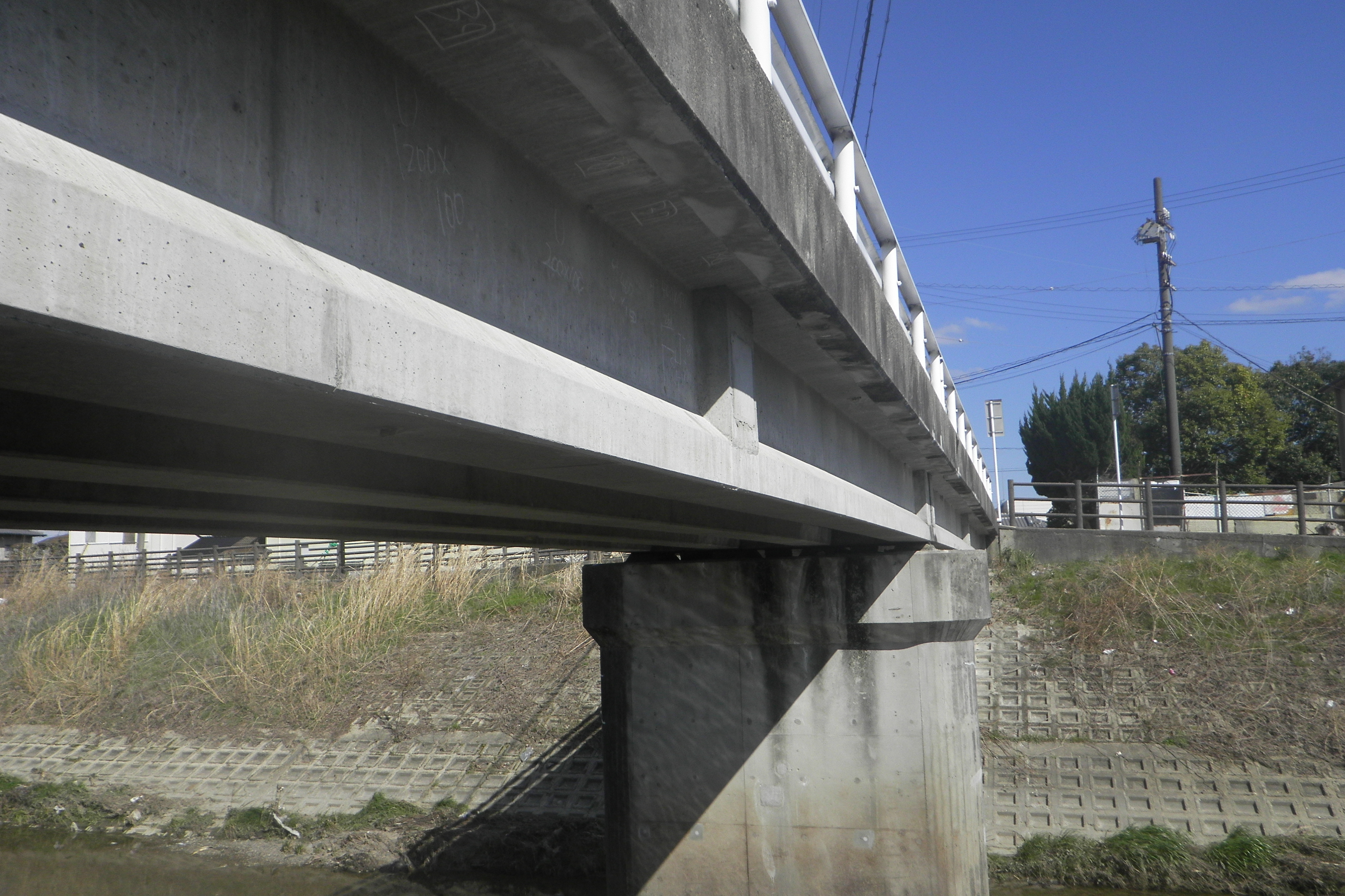 | 橋を補修・改修し、水はけをよくするために橋の中に水抜きパイプを設置しました。 | |