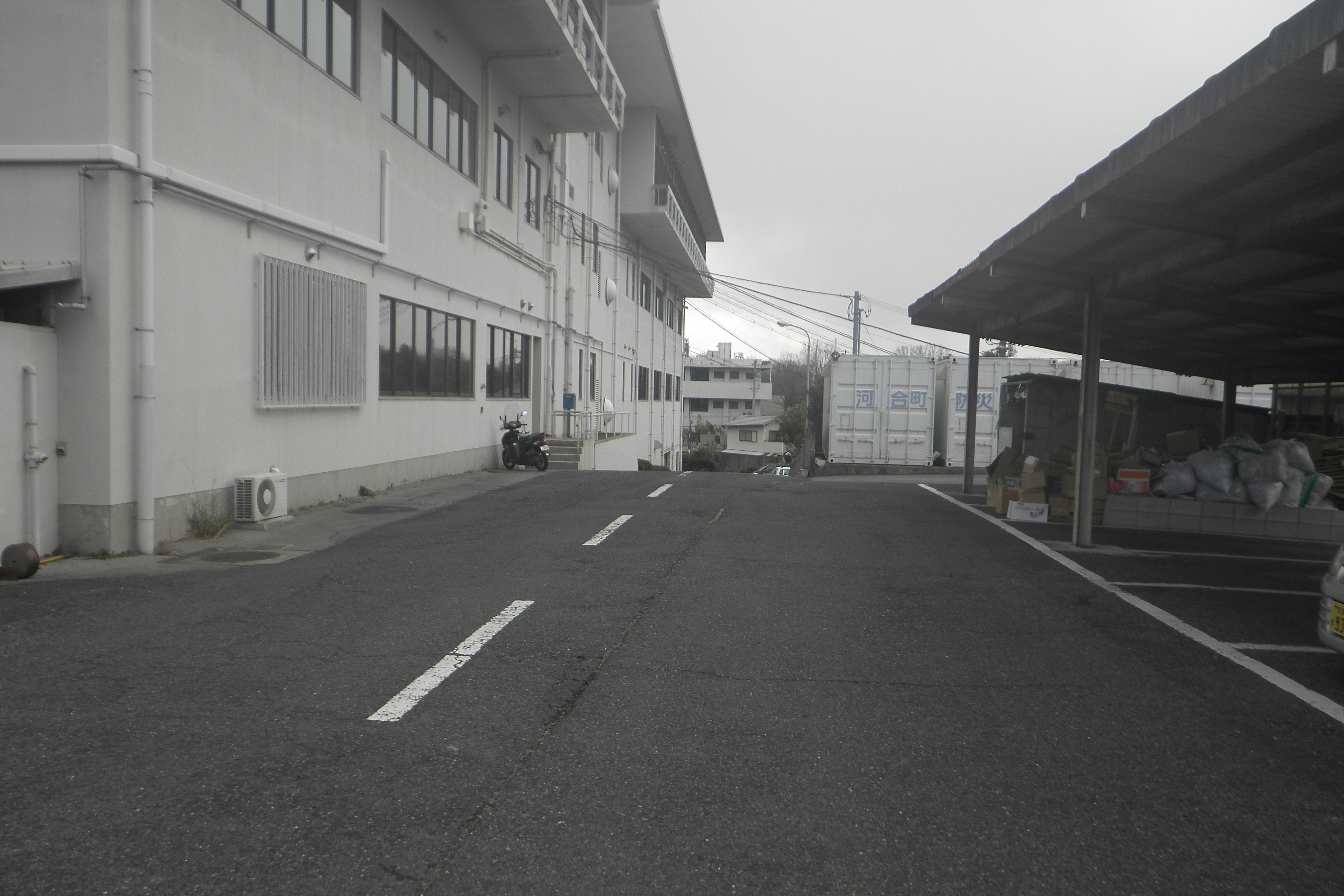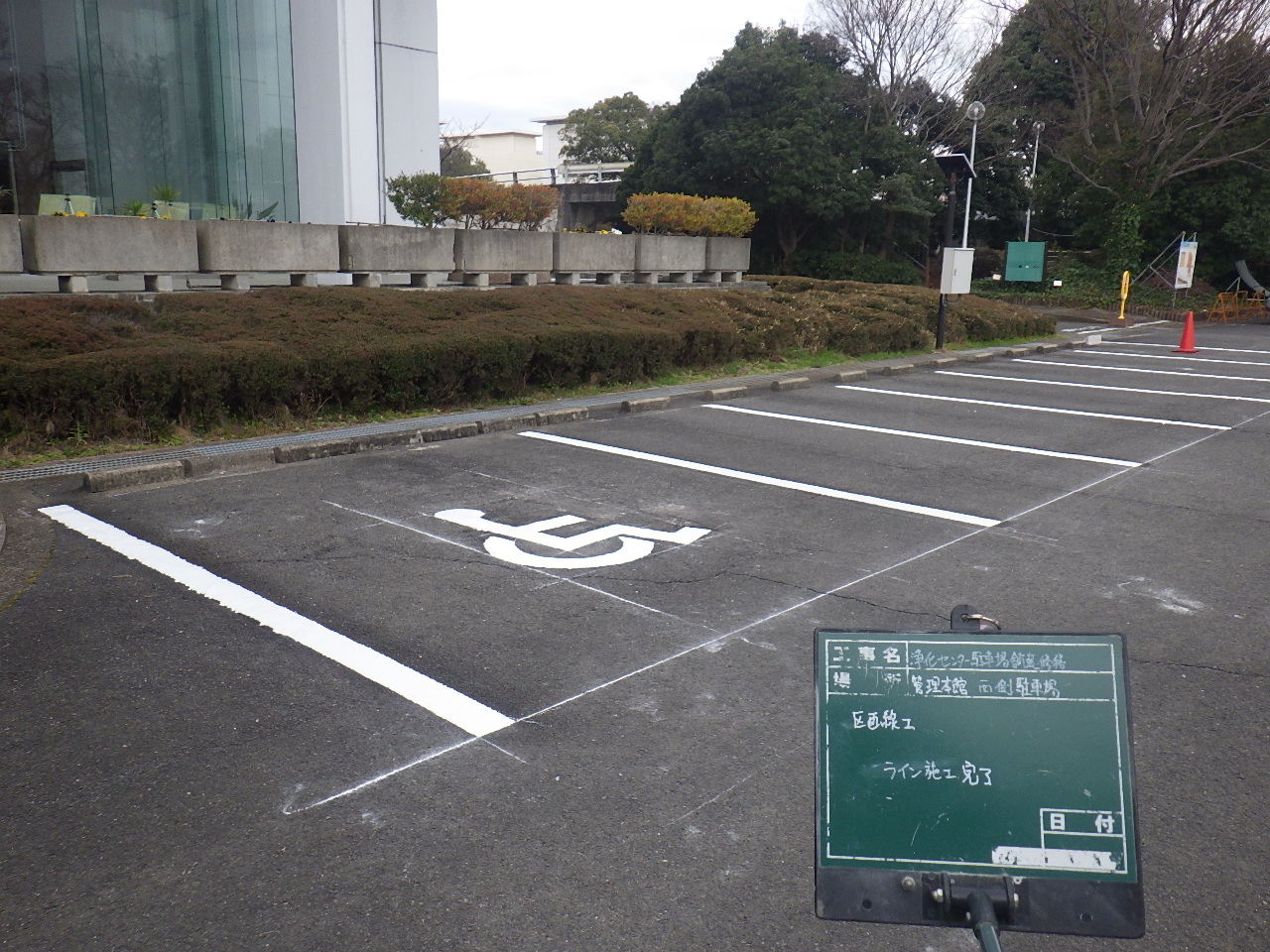 | 浄化センター駐車場の舗装、西側の駐車場にライン施工しました。 | |