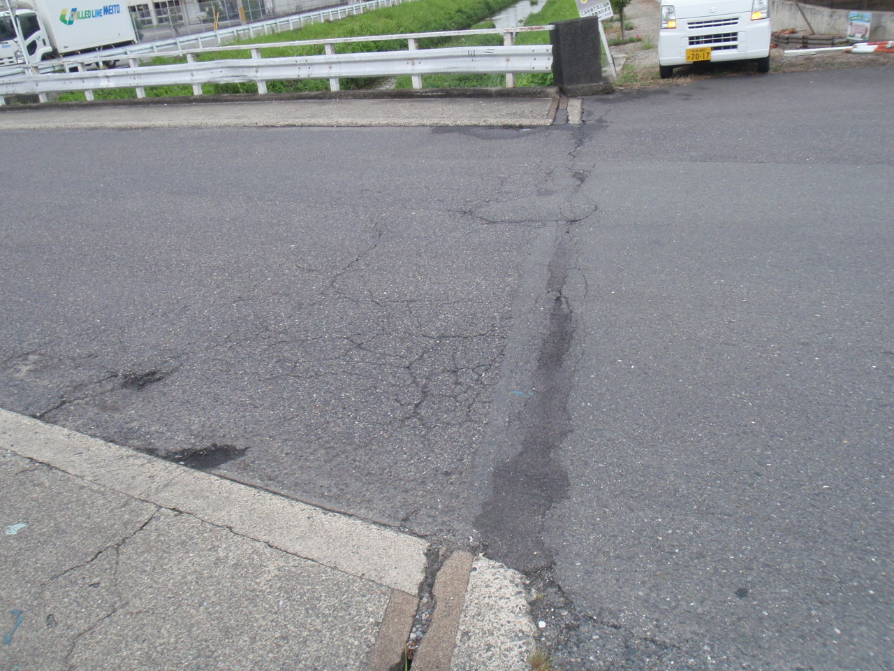 | 橋の入り口や中心部のひび割れたところなどを補修しました。 | |